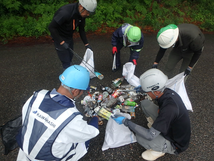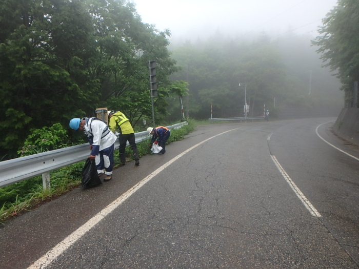 6月11日 毎年恒例の清掃ボランティアに15社30名が参加し、十三墓峠から上宝方面へつづく道路でゴミや空き缶・ペットボトルなどの回収を行いました。