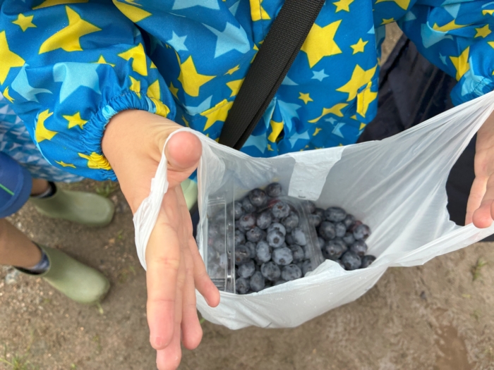 持ち帰り用のパックにたくさん詰めながら、『もうどの木のブルーベリーか、わかんない!』
